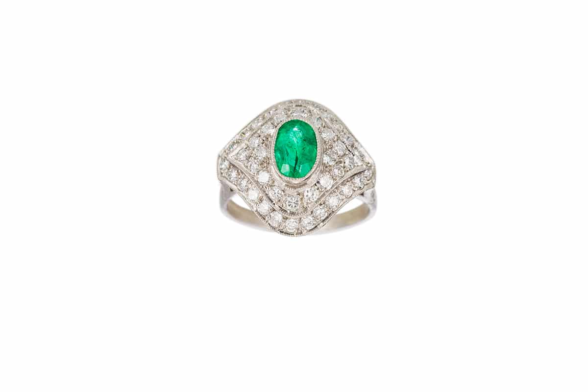Platinum emerald and diamond ring